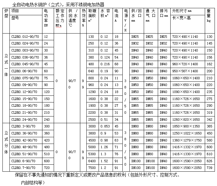 ⑸ 小功率電熱水鍋爐(6KW~240KW)采用一體式設計,安裝方便;