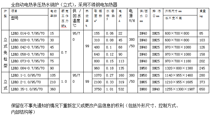 電熱水鍋爐性能簡介